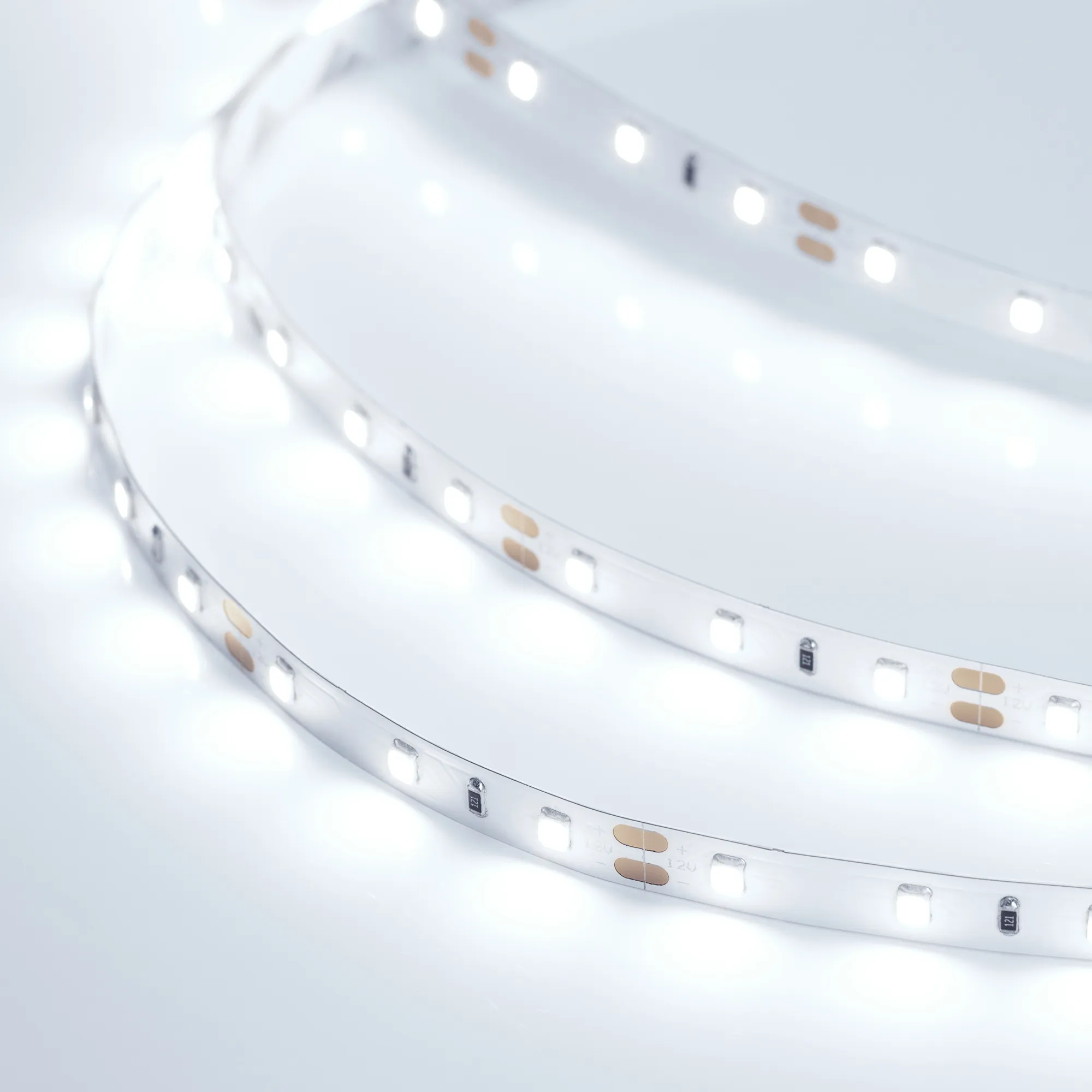 Поставка под заказ от 1200 м. Гибкая лента PRO, светодиоды smd 2835, 60шт/м (300шт на 5м), белая плата 8мм, скотч 3М. Цвет ХОЛОДНЫЙ 7700-9600K. Питание 12V, мощность 7.2 Вт/м (36 Вт на 5м), угол 120°, цветопередача CRI>85. Размеры 5000х8x1.5мм. Мин.отрезок 50мм, 3 шт светодиода. Пакет 5м. Цена за 1м.
