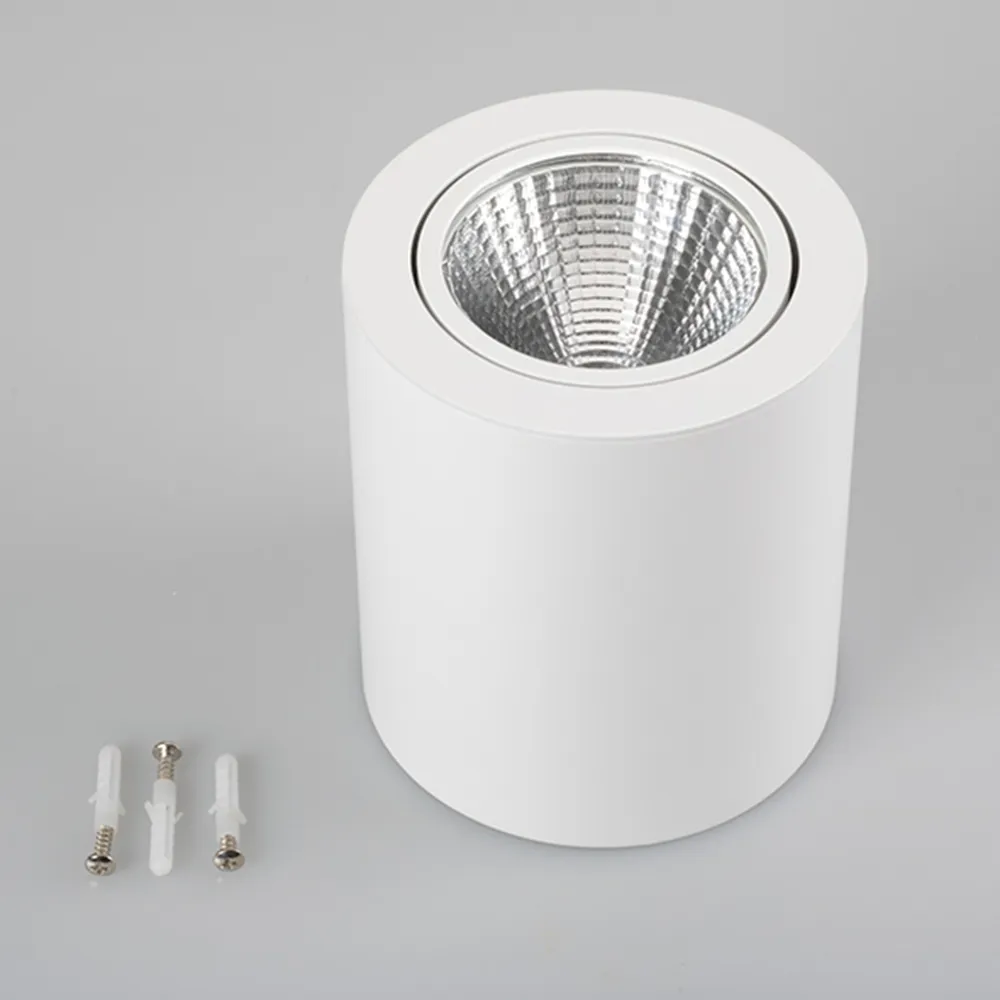 Накладной светильник 16Вт, белый корпус цилиндр. Цвет ТЕПЛЫЙ БЕЛЫЙ 3000K, св.поток 1280-1440лм, CRI(Ra)>80, наклоняемая ось, угол 24°. Размер Ф120x140 мм. Питание AC 180-240V, 16Вт, встроенный драйвер (DC 400mA 37V).