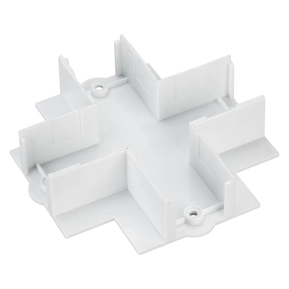Белая накладка для крестового коннектора. Используется при монтаже встраиваемых треков. 100х100х25мм. При использовании с треками и аксессуарами другой серии возможно отличие по цвету.