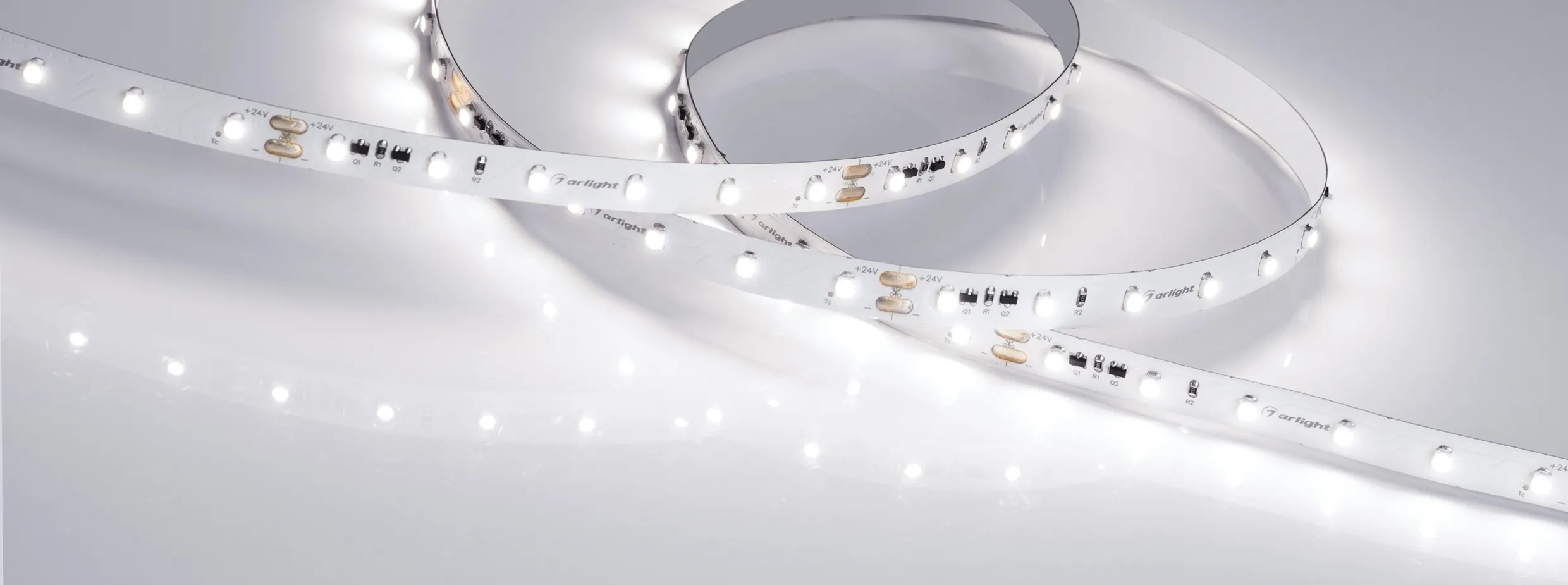 В магазине Мельковский Свет Вы можете купить "Лента светодиодная RT-20000 24V White6000 (3528, 60 LED/m, 20m) (Arlight, 4.8 Вт/м, IP20)"