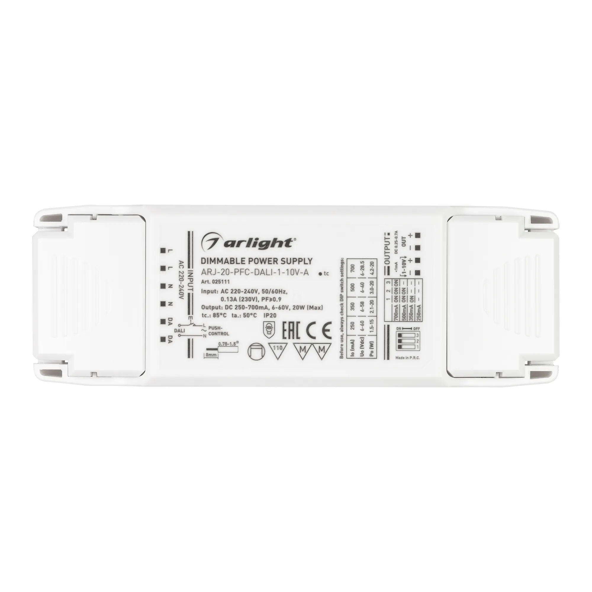 Блок питания ARJ-20-PFC-DALI-1-10V-A (20W, 250-700mA) (Arlight, IP20 Пластик, 5 лет)