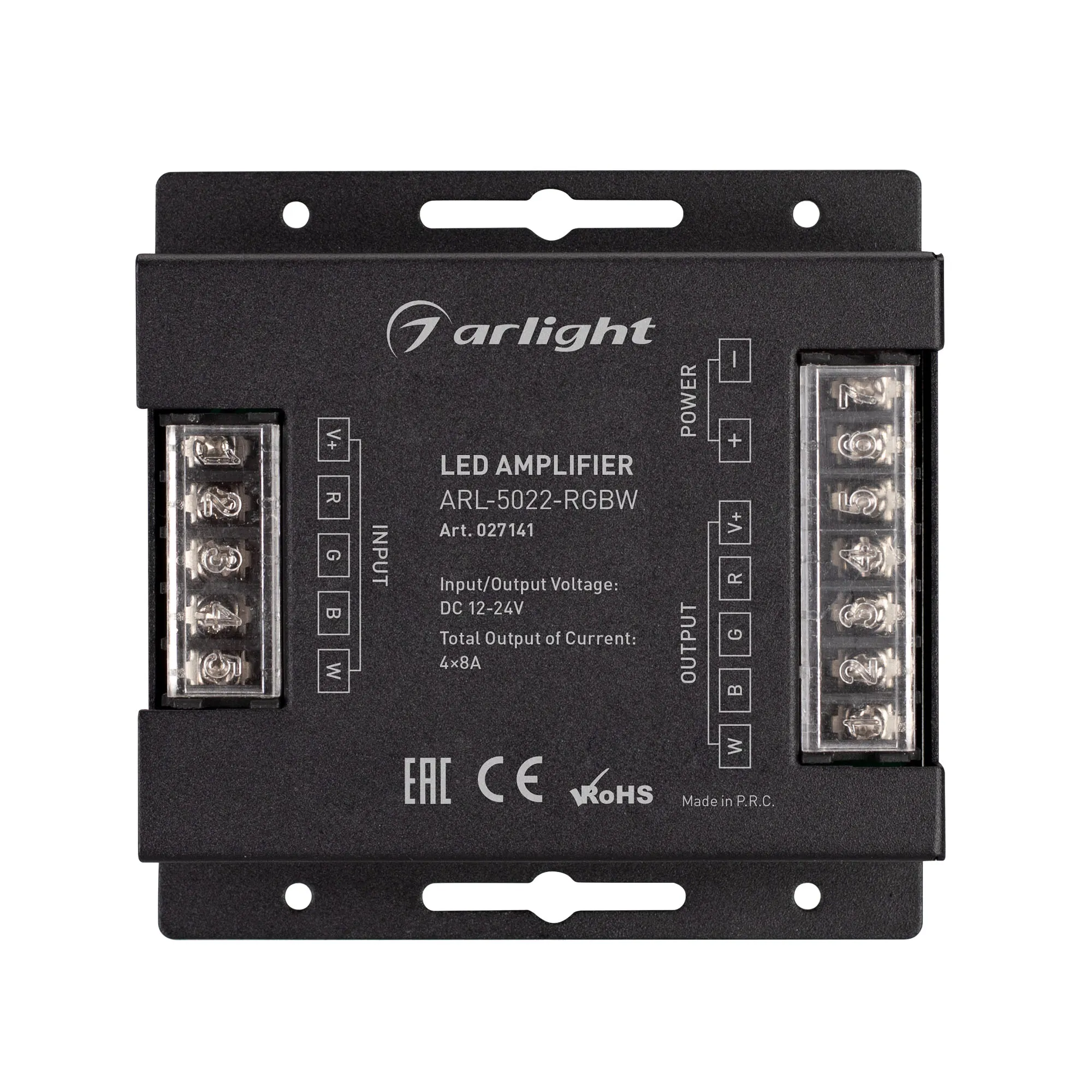 В магазине Мельковский Свет Вы можете купить "Усилитель ARL-5022-RGBW (12-24V, 4x8A, 384-768W) (Arlight, IP20 Металл, 3 года)"