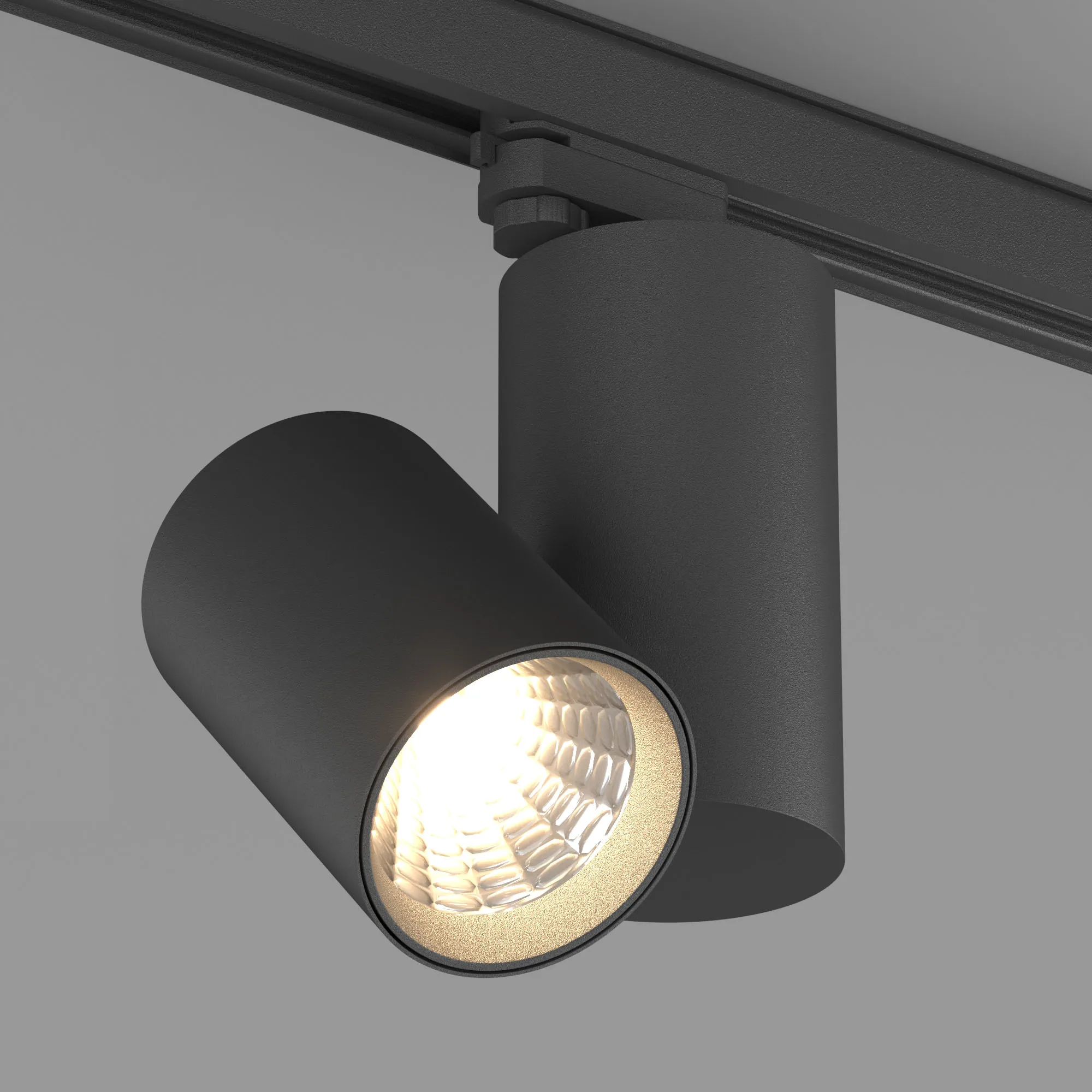 Трековый светильник 15Вт, черный круглый корпус, черная вставка, металл.