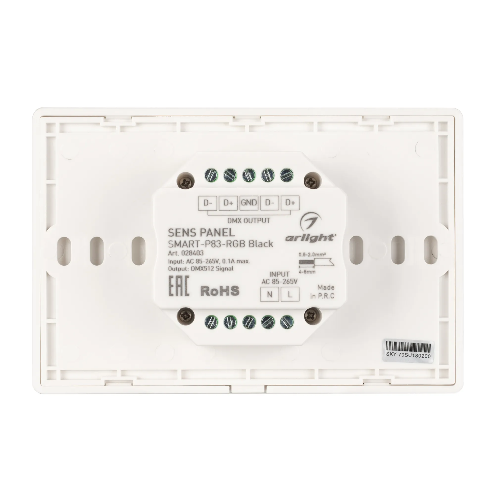 В магазине Мельковский Свет Вы можете купить "Панель Sens SMART-P83-RGB Black (230V, 4 зоны, 2.4G) (Arlight, IP20 Пластик, 5 лет)"
