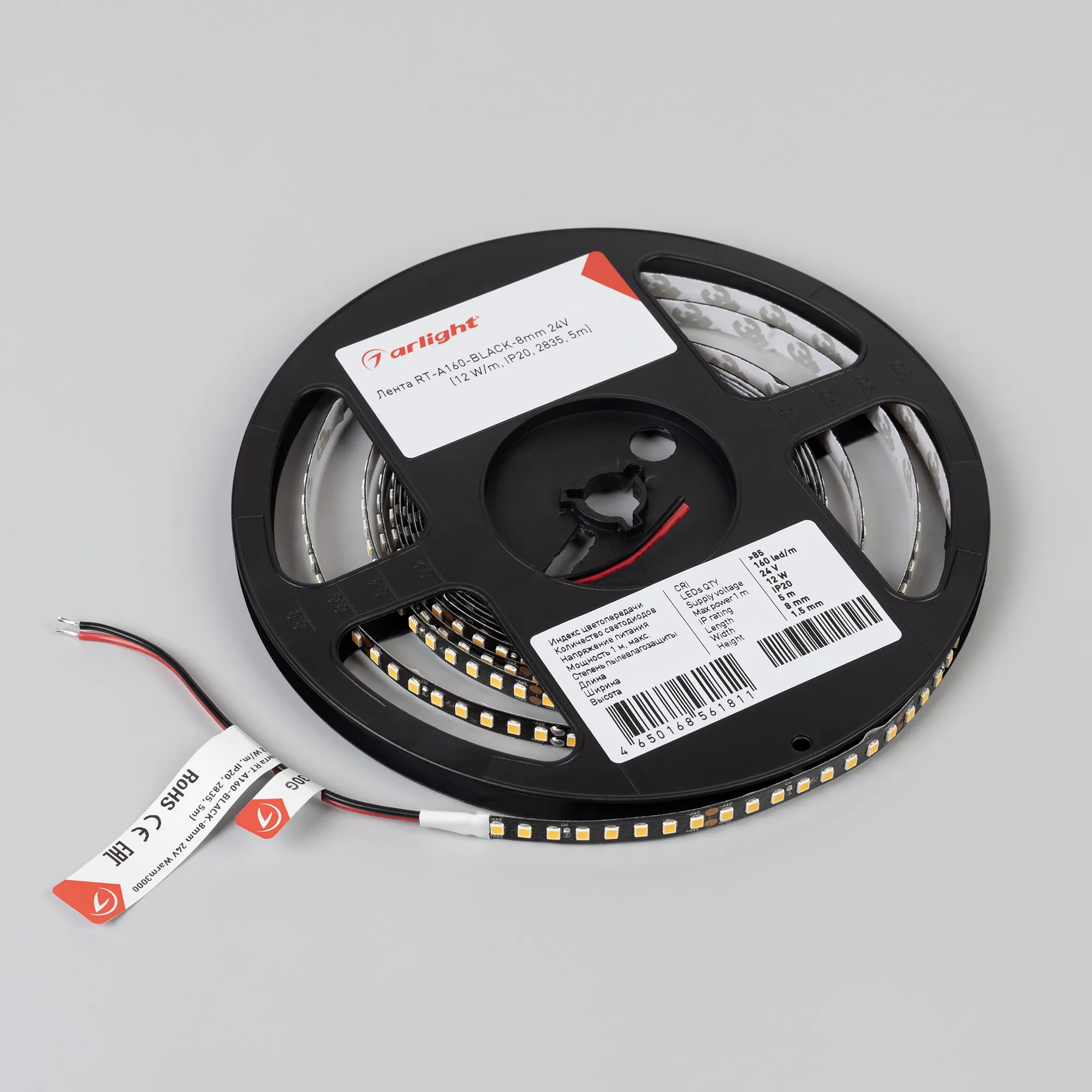 Лента светодиодная RT-5000-2835-160-24V Day4000 (Black 8mm, 12W/m, IP20) (Arlight, -)