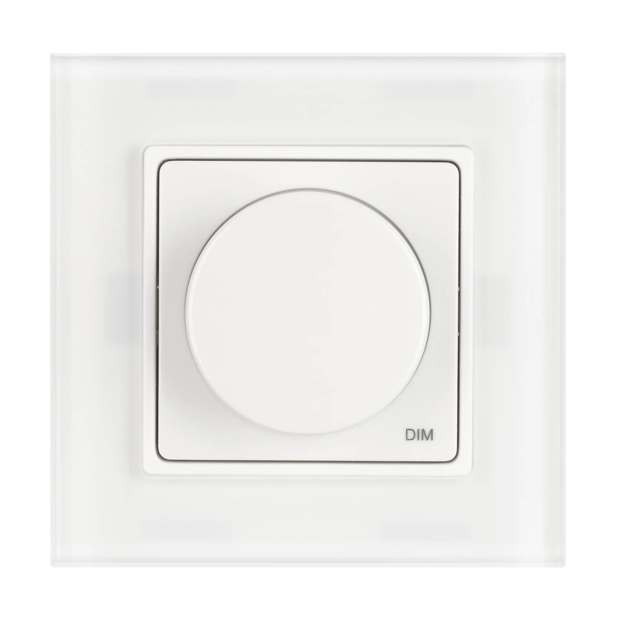 Накладная роторная панель 2.4 ГГц, цвет белый. Материал - стекло/пластик. Для управления одноцветными источниками света (ШИМ). Управление яркостью с помощью роторного вращателя. Питание/рабочее напряжение 3VDC от батарейки CR2032. Габариты 86х86х23 мм. Панель совместима с диммерами серии SMART.