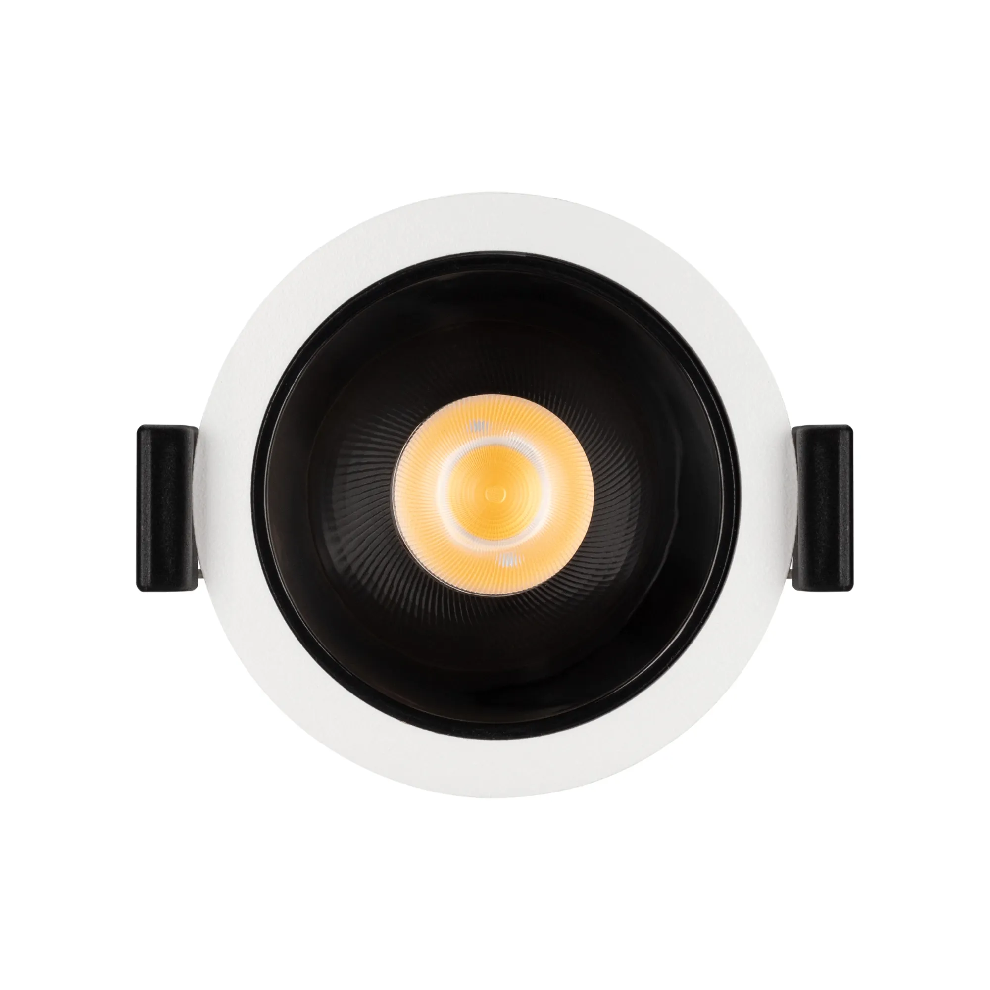 Встраиваемый светильник даунлайт. Мощность 15 Вт, св. поток 1210 лм, 81 лм/Вт, дневной 4000 K, CRI>90, UGR<16, угол 35°, напряжение питания 230 В. Белый круглый корпус из алюминия, черный ГЛЯНЦЕВЫЙ отражатель из PMMA, степень защиты IP20. Размер: диаметр 66 мм, высота 68 мм. Монтаж встраиваемый, установочное отверстие: диаметр 60 мм. Драйвер 26-43 В, 350 мА, пульсация <2%.