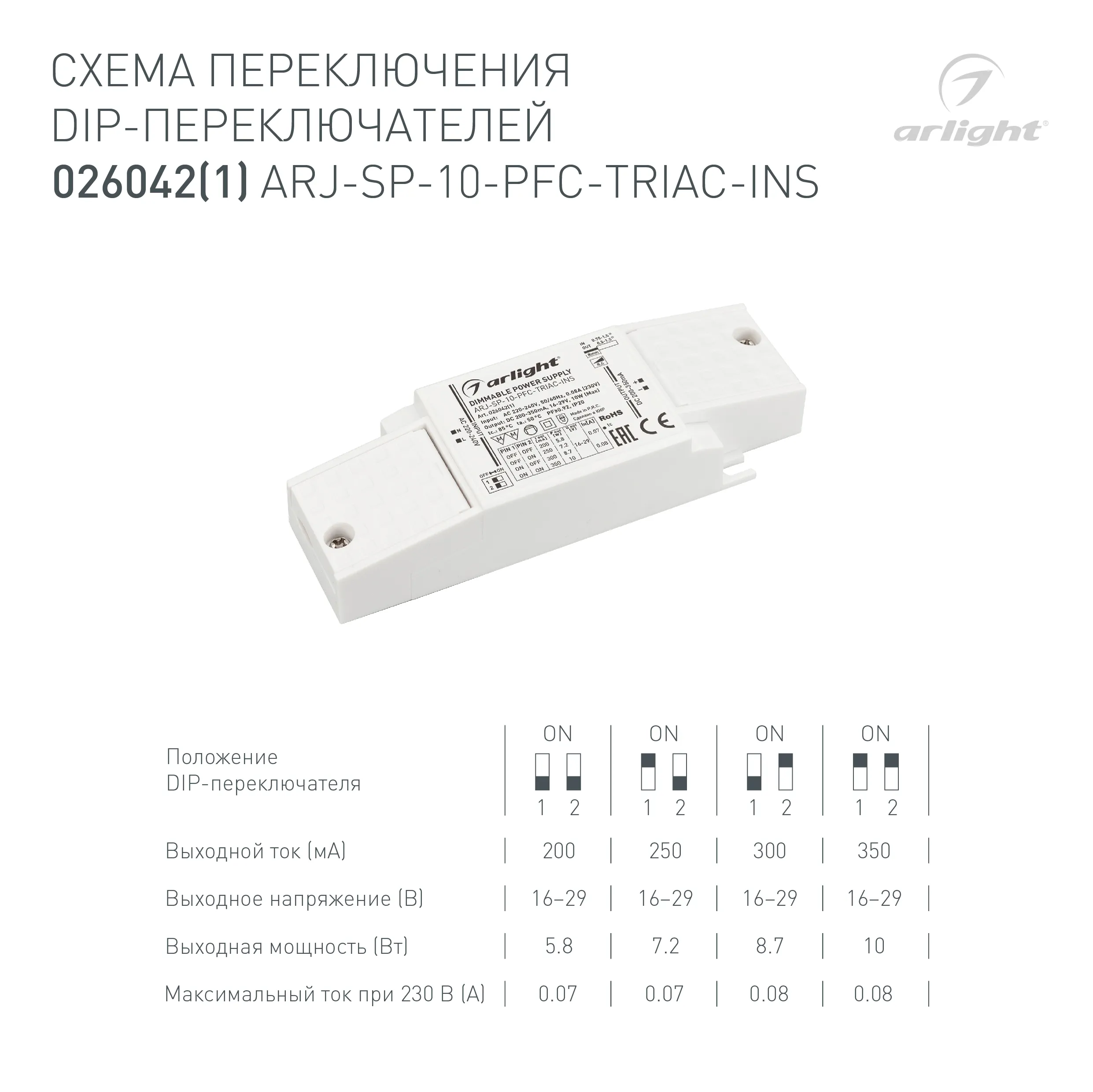 Блок питания ARJ-SP-10-PFC-TRIAC-INS (10W, 16-29V, 0.2-0.35A) (Arlight, IP20 Пластик, 5 лет)