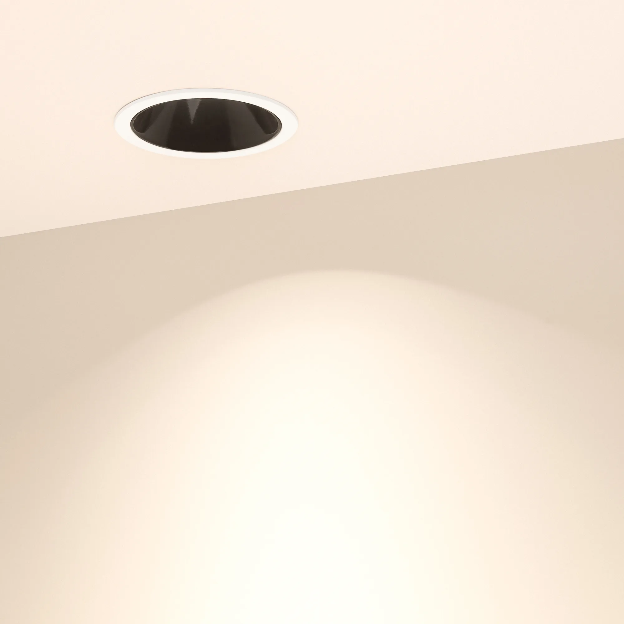 Встраиваемый светильник даунлайт. Мощность 23.3 Вт, св. поток 1995 лм, 86 лм/Вт, теплый 3000 K, CRI>90, UGR<16, угол 30°, напряжение питания 230 В. Белый круглый корпус из алюминия, черный ГЛЯНЦЕВЫЙ отражатель из PMMA, степень защиты IP20. Размер: диаметр 90 мм, высота 93 мм. Монтаж встраиваемый, установочное отверстие: диаметр 82 мм. Драйвер 30-40 В, 600 мА, пульсация <1%.