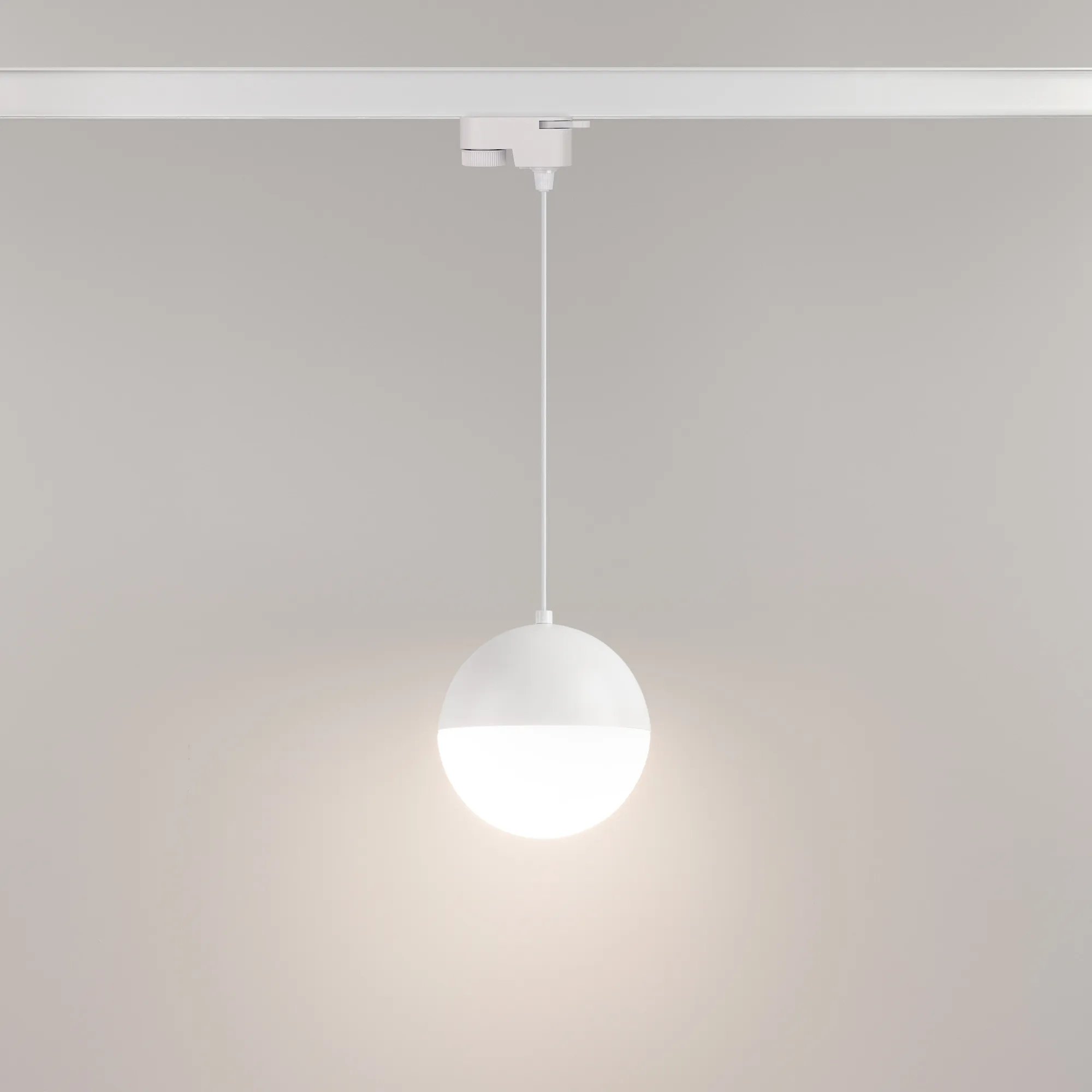 Светильник подвесной для треков/шин 2 провода. Мощность 11 Вт, св. поток 960 лм, 80 лм/Вт, дневной 4000 K, CRI>90, угол 170°, напряжение питания 230 В. Белый корпус из алюминия, материал плафона стекло, степень защиты IP20. Размер: диаметр 150 мм, длина подвеса 1500 мм. Монтаж на трек 1-фазный. Драйвер 28-42 В, 250 мА, пульсация <1%.