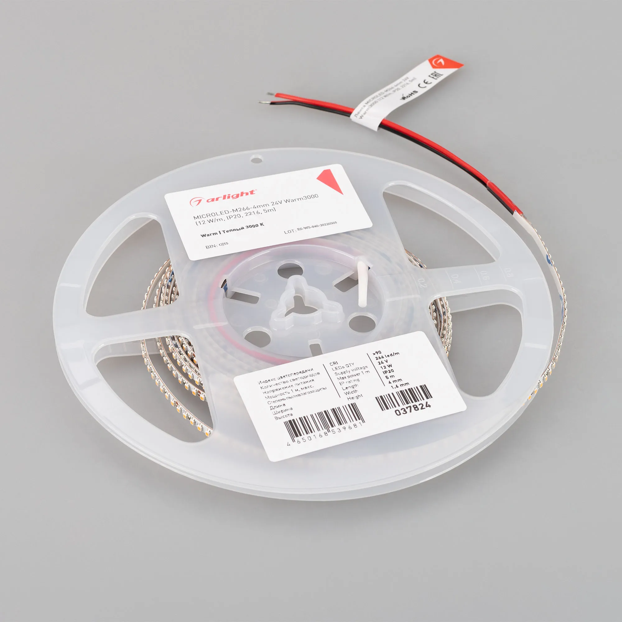 Лента светодиодная MICROLED-M266-4mm 24V Warm3000 (12 W/m, IP20, 2216, 5m) (Arlight, узкая)