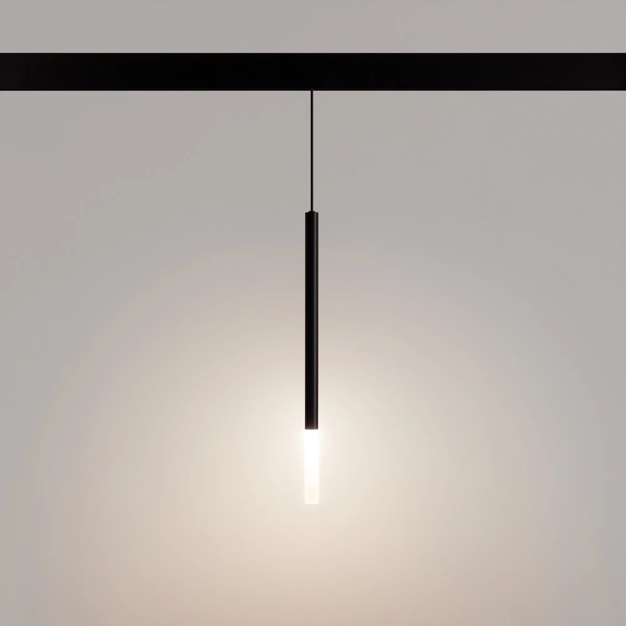 Светильник для магнитных треков MAG-ORIENT шириной 26 мм. Мощность 3 Вт, св. поток 120 лм, дневной 4000 K, CRI>90, угол 180°, напряжение питания 48 В. Черный цилиндрический корпус из металл, степень защиты IP20.Размер: длина светоизлучающего модуля 120 мм, длина светильника 450 мм ширина 20 мм, высота с учетом подвеса 2000 мм. Монтаж на трек MAG-ORIENT. Пульсация <1%.