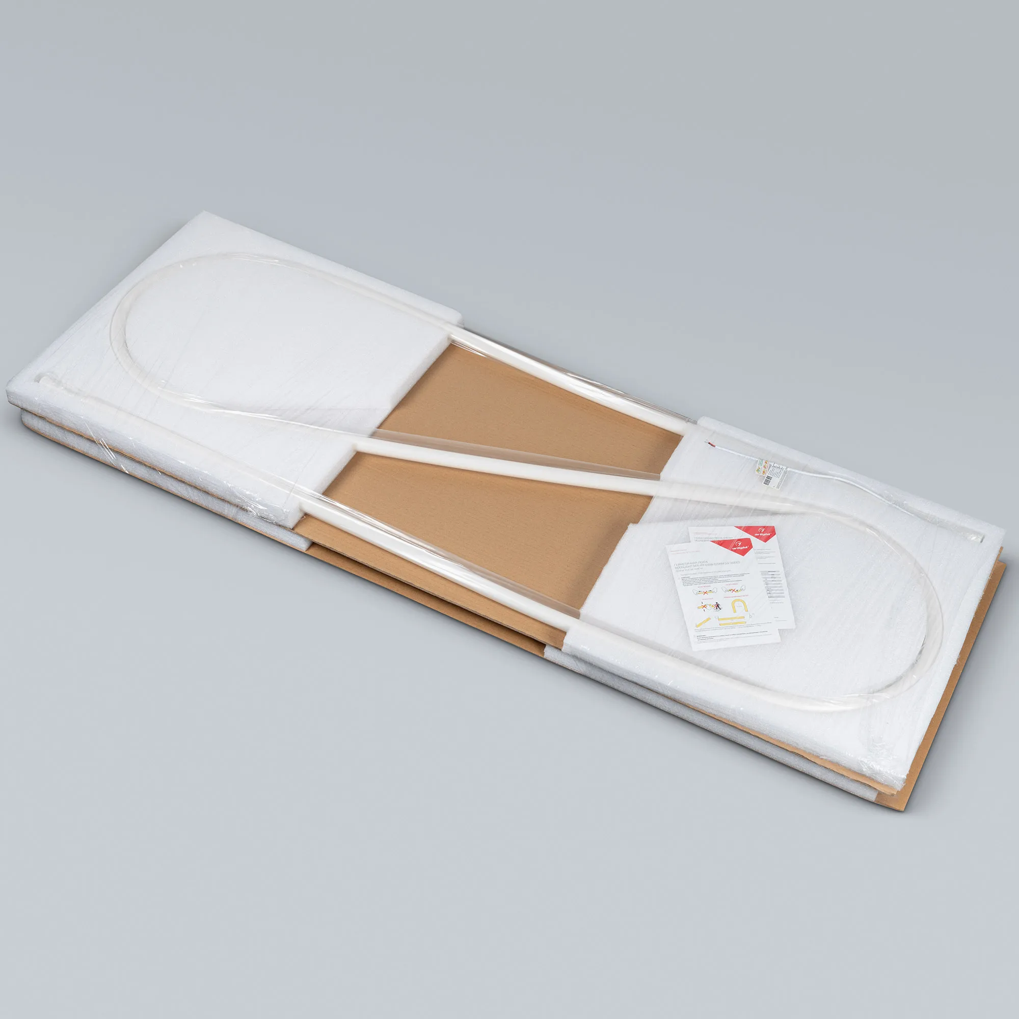 Гибкая герметичная лента (неон серии MOONLIGHT), сечение 25×25 мм. Светодиоды CSP 1088 шт/м. Цвет свечения ТЕПЛЫЙ БЕЛЫЙ (3000 К), индекс цветопередачи CRI>90, световой поток 1180 лм/м, угол излучения 360°. Мощность 20 Вт/м, питание 24 В. Класс пылевлагозащиты IP65. Размеры 5000×25×25 мм. Резка не предусмотрена. Форма изгиба ленты фиксируется. Изгиб согласно метки на корпусе, минимальный радиус изгиба 150 мм. Кабель питания длиной 500 мм, вывод с одной стороны вдоль линии сечения неона. Катушка 5 м. Цена за 1 м. В виду особенности конструкции ленты, упаковка имеет размеры 1600x980x260 мм. Гарантия 3 года.