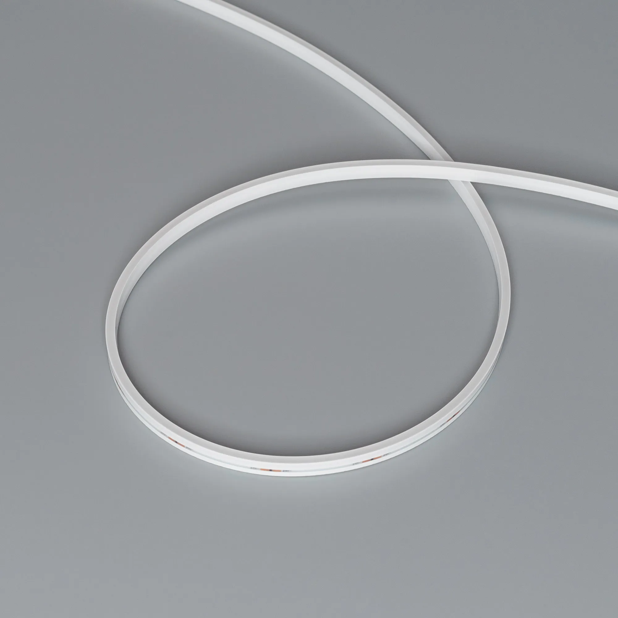 Гибкая герметичная лента (неон серии MOONLIGHT), сечение 3×6 мм. Светодиоды SMD 2216 196 шт/м. Цвет свечения ДНЕВНОЙ (4000 К), индекс цветопередачи CRI>90, световой поток 200 лм/м, угол излучения 112°. Мощность 7.2 Вт/м, питание 24 В. Класс пылевлагозащиты IP54. Размеры 5000×3×6 мм. Мин. отрезок 35.7 мм. Горизонтальный изгиб SIDE, минимальный радиус изгиба 30 мм. Кабель питания длиной 500 мм, вывод с двух сторон вдоль линии сечения неона. Катушка 5 м. Цена за 1 м. Гарантия 3 года.