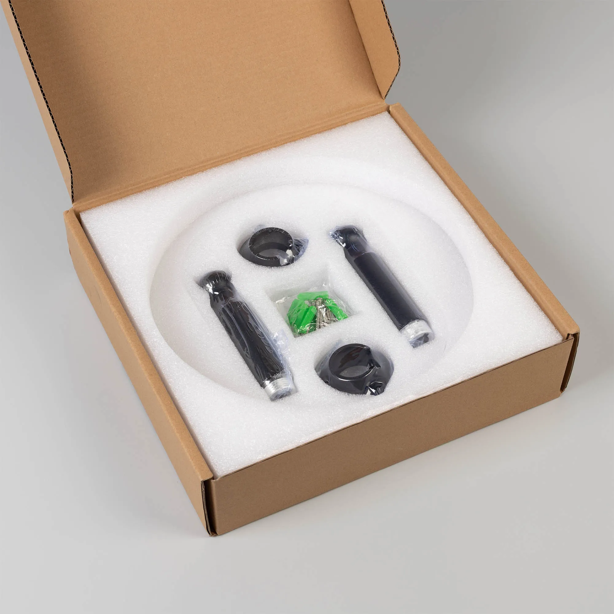 Набор из двух креплений для гибкой стальной полосы Stingray-R. Цвет креплений - черный. В комплекте: дюбели - 6 шт., шурупы - 6 шт., шестигранник - 1 шт.