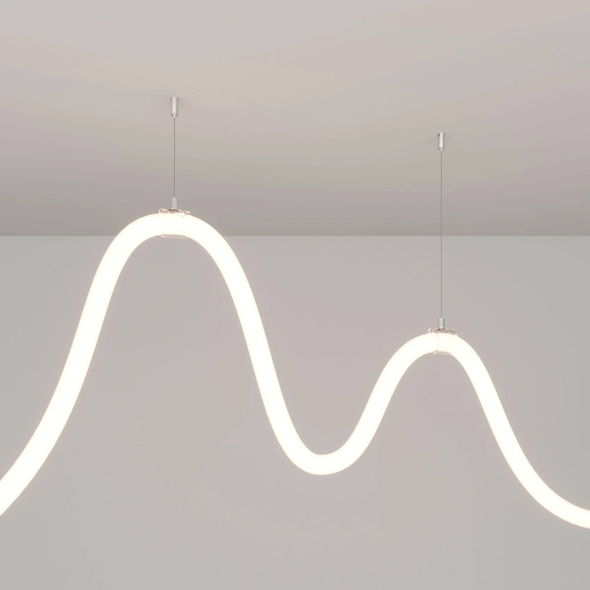 Горизонтальный подвес для герметичной ленты MOONLIGHT-D25. Цвет белый. Длина тросов 2м, длина горизонтальной трубки - 1м. Подходит для любых потолочных поверхностей. Совместим с прозрачными трубками с боковым выводом кабеля (см.совместимые).