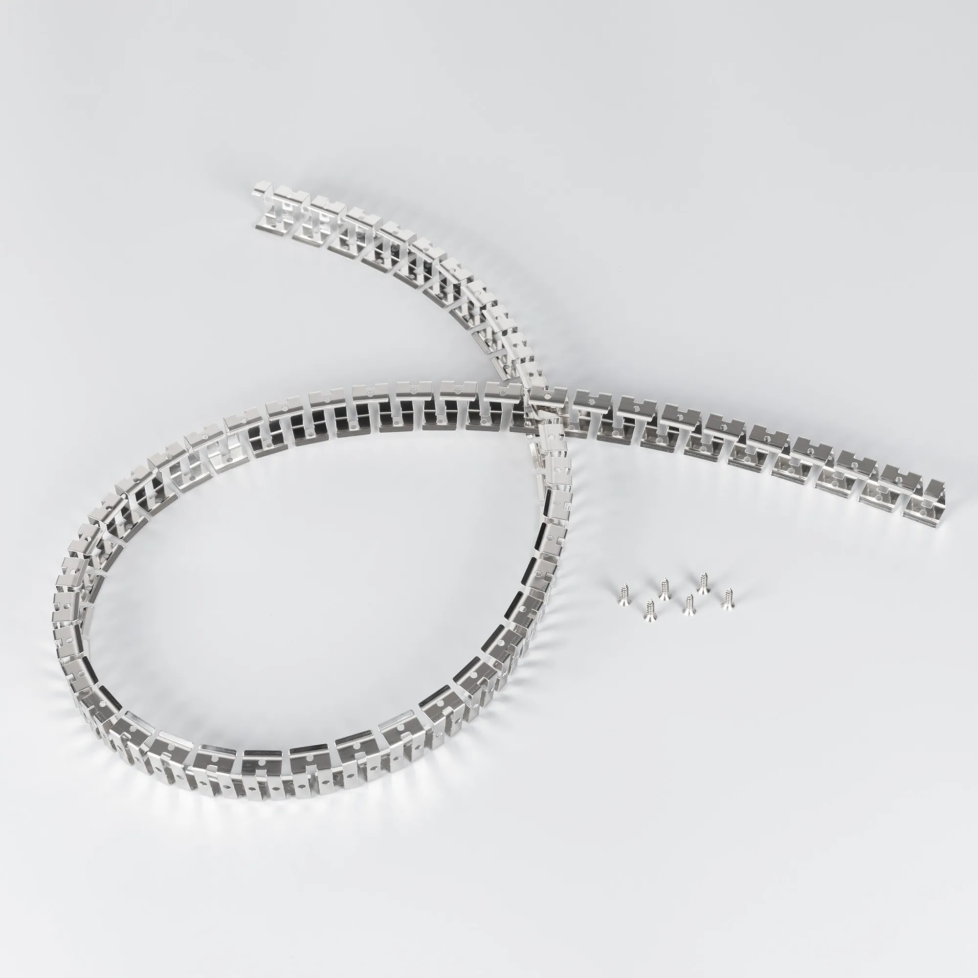 Гибкий профиль из нержавеющей стали для грейзера THOR сечения 25x27 мм. Внешние размеры 980x21.2x10 мм. В комплекте один профиль длиной 980 мм. Цена за штуку.