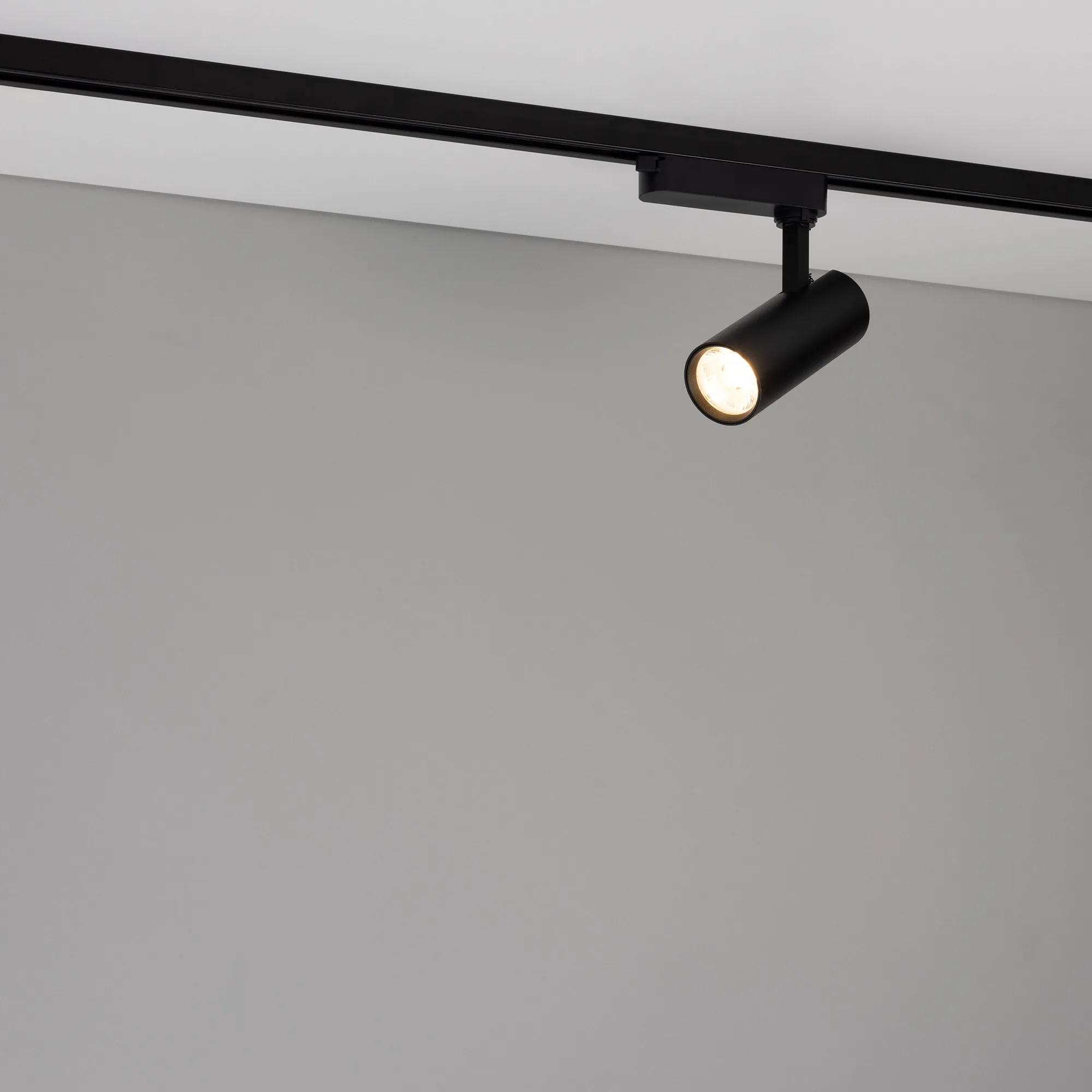 Светильник для треков/шин 2 провода. Мощность 15 Вт, св. поток без решетки honeycomb 1500 лм, 100 лм/Вт, с решеткой honeycomb 990 лм, 66 лм/Вт, дневной 4000 K, CRI>90, угол 24°, напряжение питания 230 В. Черный круглый корпус из алюминия, материал линзы PMMA, степень защиты IP20. Размер: диаметр 60 мм, длина световой части 141 мм. Монтаж на трек 1-фазный. Драйвер встроенный 350 мА 25-40 В, пульсация <5%.