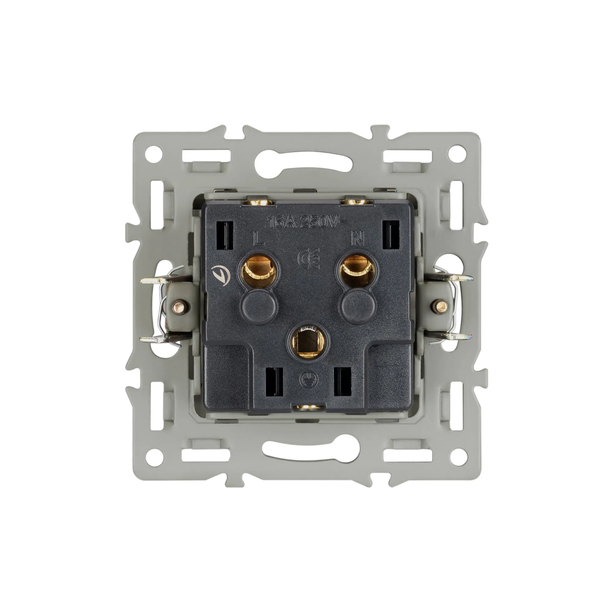 Механизм розетки с заземлением на 1 пост, с суппортом из алюминия. Цвет - белый. Степень пылевлагозащиты - IP20.