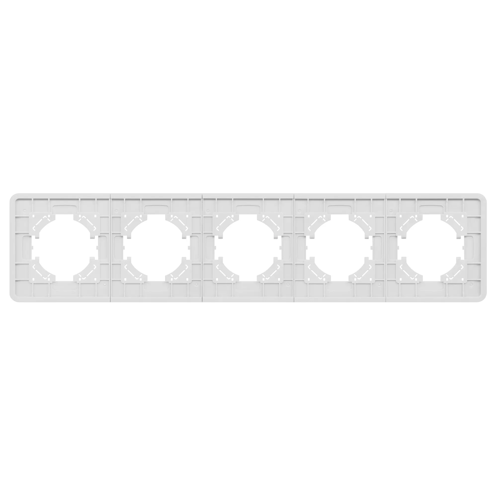 Рамка алюминиевая на 5 постов, под встраиваемый механизм. Цвет - серебристый. Среднего уровня герметичности IP20. Ориентация монтажа - горизонтальная (основным ориентиром служат посадочные выступы для накладки механизма).