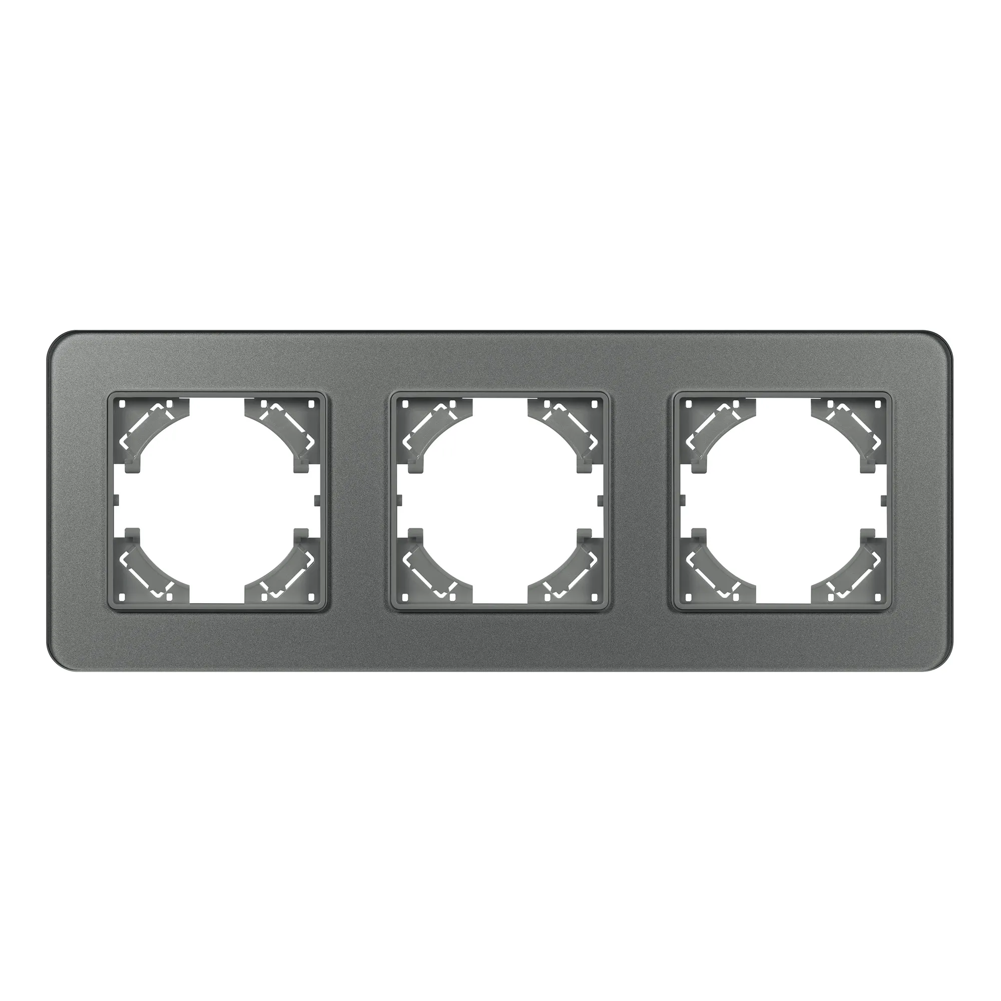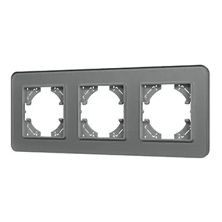 Рамка стеклянная на 3 поста, под встраиваемый механизм. Цвет - серый. Среднего уровня герметичности IP20. Ориентация монтажа - горизонтальная (основным ориентиром служат посадочные выступы для накладки механизма).