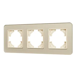 Рамка стеклянная на 3 поста, под встраиваемый механизм. Цвет - золотой. Среднего уровня герметичности IP20. Ориентация монтажа - горизонтальная (основным ориентиром служат посадочные выступы для накладки механизма).