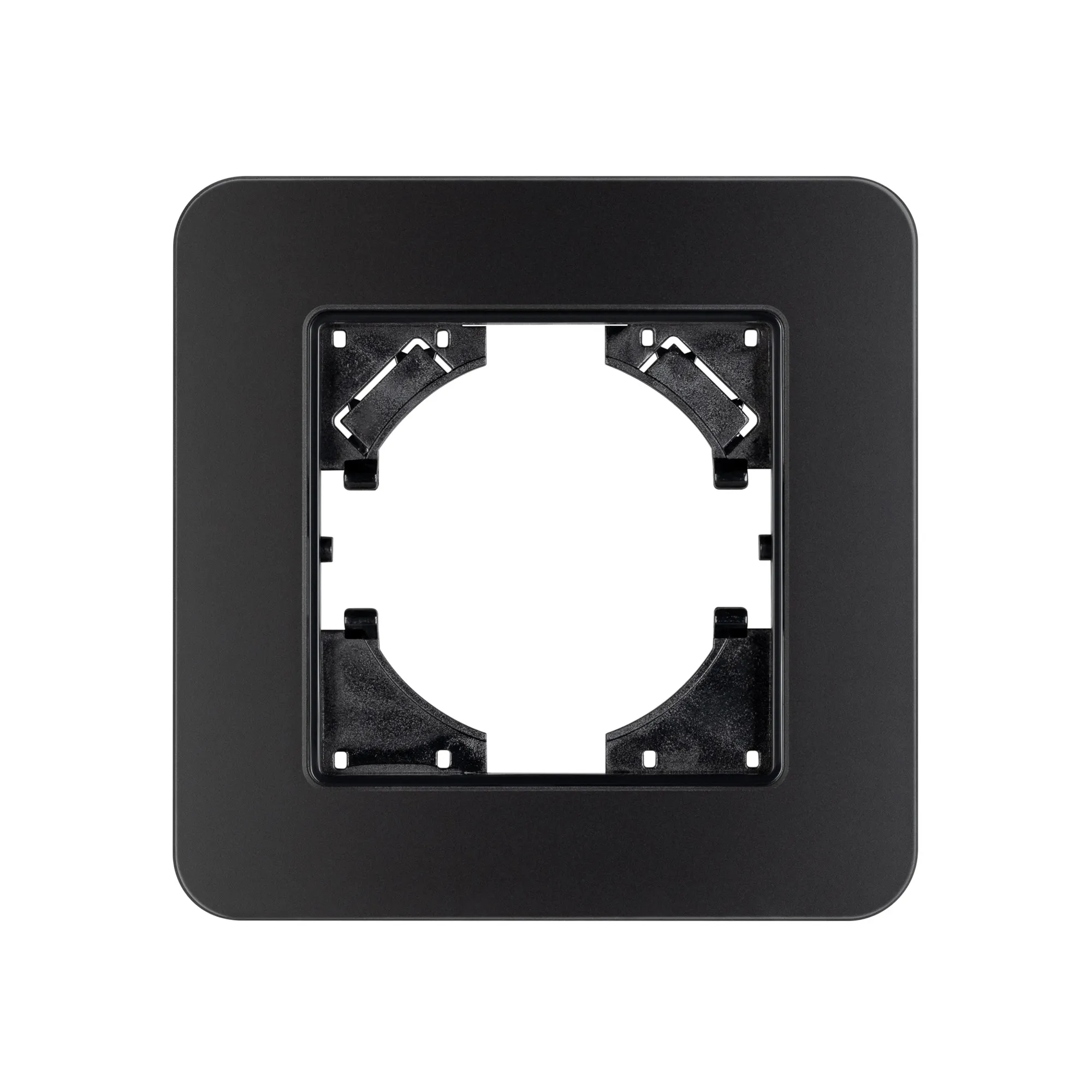 Рамка стеклянная на 1 пост, под встраиваемый механизм. Цвет - черный с Soft-Touch покрытием. Среднего уровня герметичности IP20. Ориентация монтажа - горизонтальная (основным ориентиром служат посадочные выступы для накладки механизма).