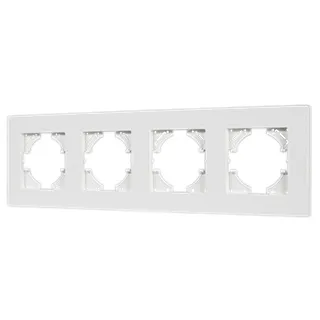 Рамка пластиковая на 4 поста, под встраиваемый механизм. Цвет - белый. Среднего уровня герметичности IP20. Ориентация монтажа - горизонтальная (основным ориентиром служат посадочные выступы для накладки механизма).