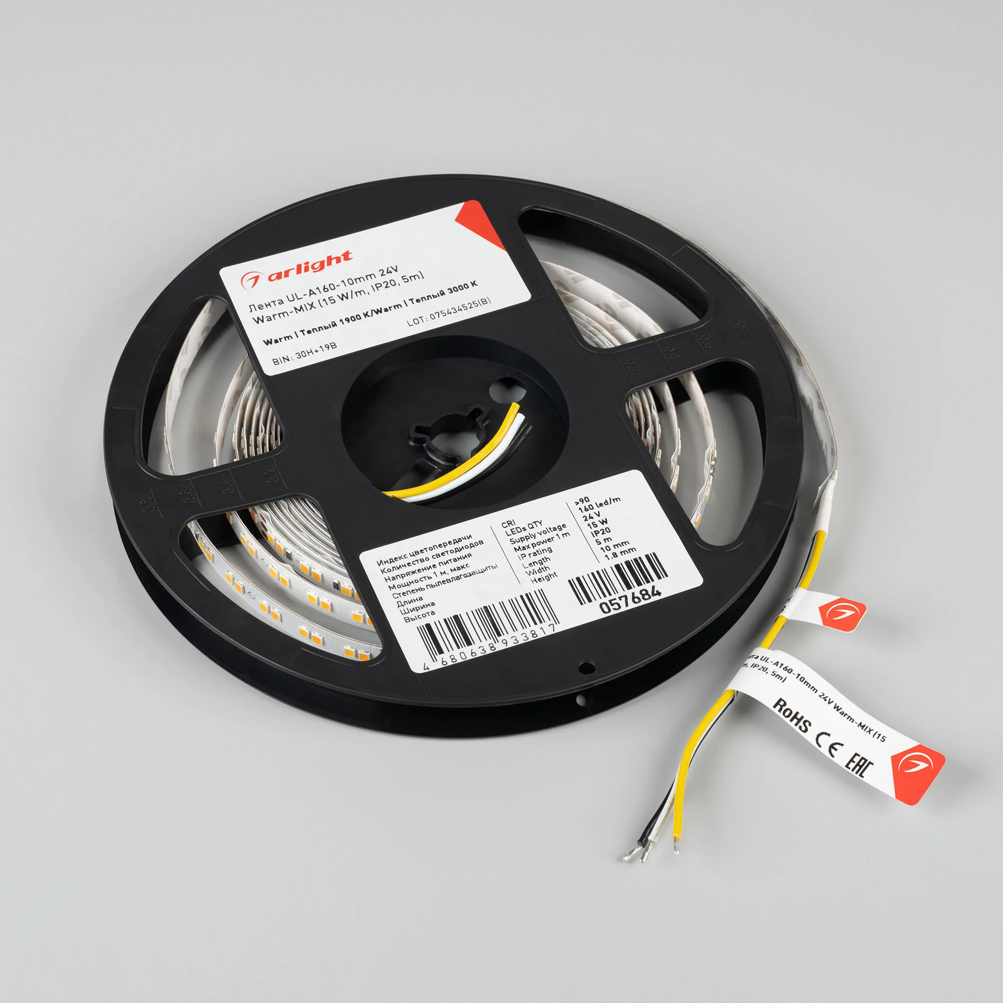 Лента UL-A160-10mm 24V Warm-MIX (15 W/m, IP20, 5m) (Arlight, Изменяемая ЦТ)
