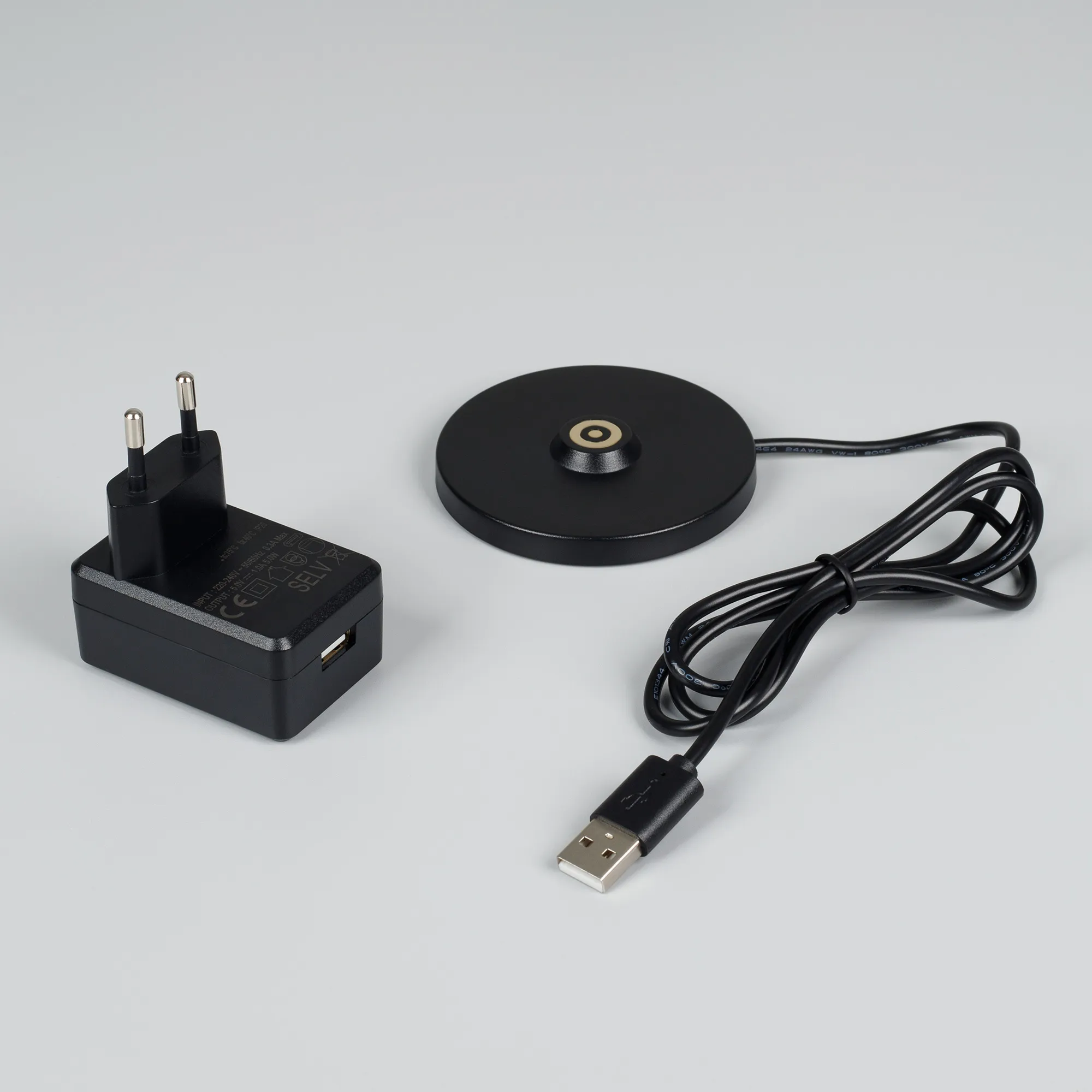 Настольный светильник со встроенным аккумулятором 1.5Вт, алюминиевый корпус, цвет песочный. Цвет ТЕПЛЫЙ БЕЛЫЙ 2200-2700-3000K, св.поток 110-130 лм, CRI(Ra)>80, угол 90°. Размер Ф75x250мм. IP54. Зарядка от сети переменного тока AC220-240V. Тип встроенного аккумулятора 1500мАч Li-ion, напряжение батареи 3.7V