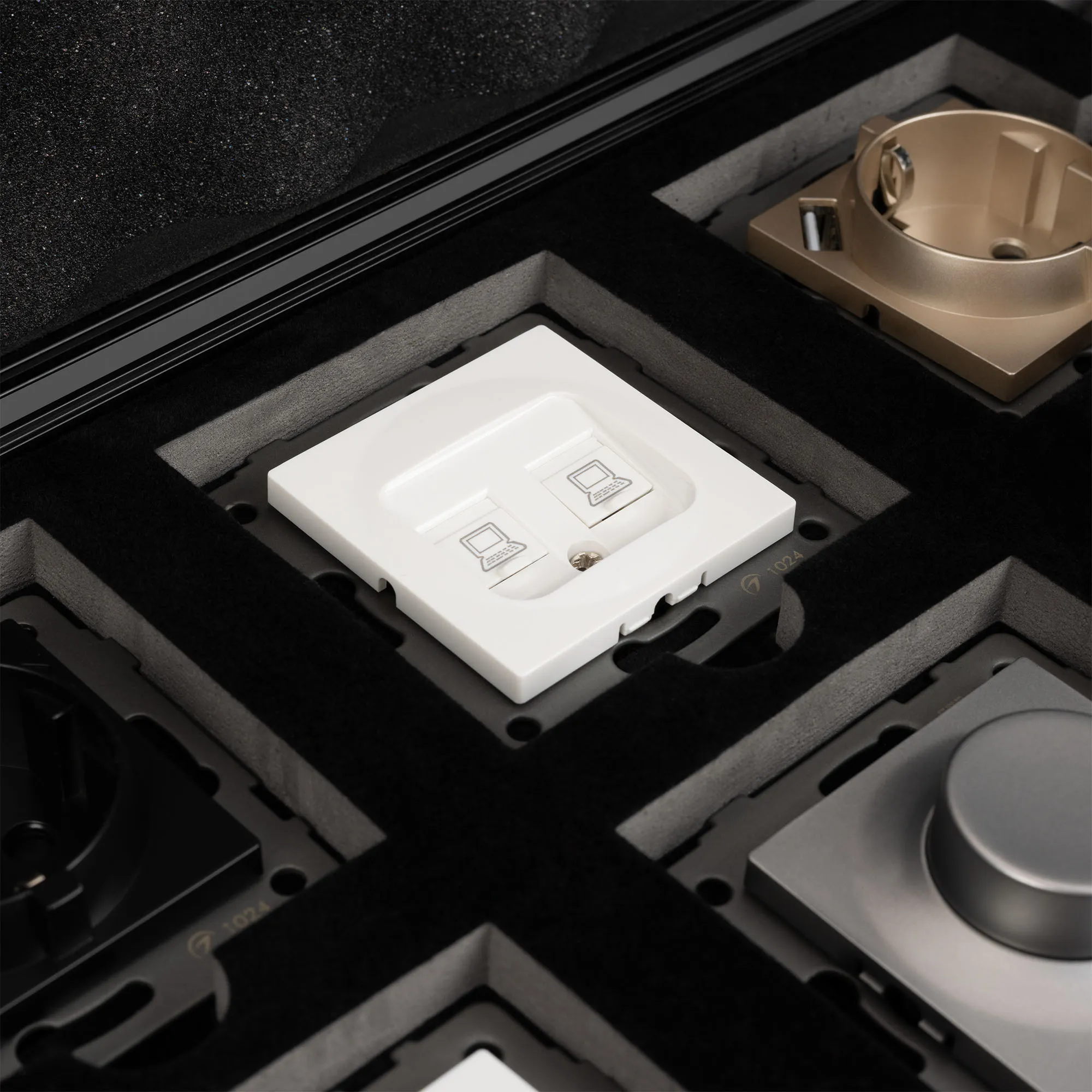 Ячейки для размещения: 8 мест под механизмы и 16 мест под однопостовые рамки.