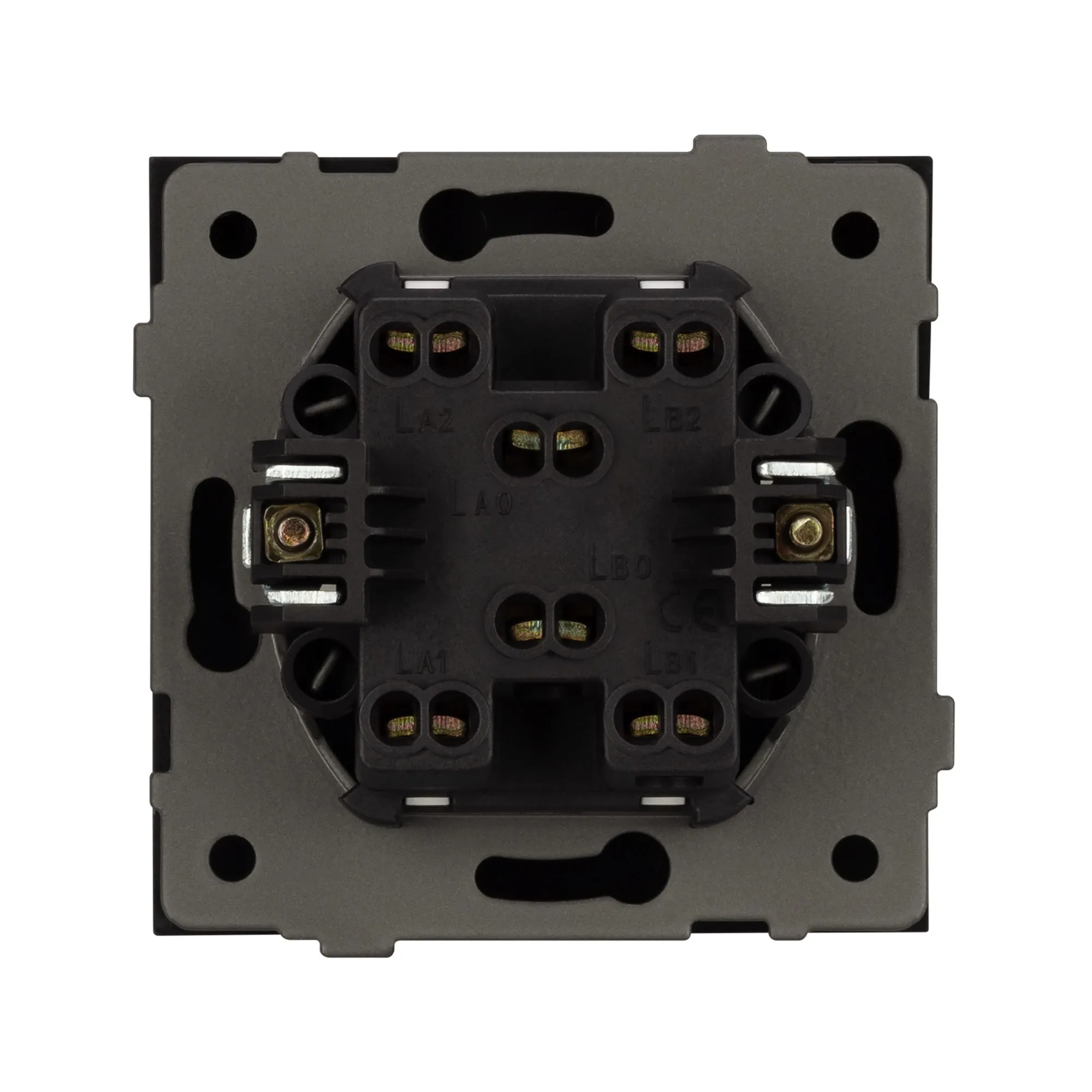 Механизм выключателя света клавишный на 1 пост 2 клавиши (проходной). Цвет - черный. Без фронтальной рамки. Уровень пылевлагозащиты IP20. Выключатель устанавливается в стандартный подрозетник круглого сечения диаметром 60мм.