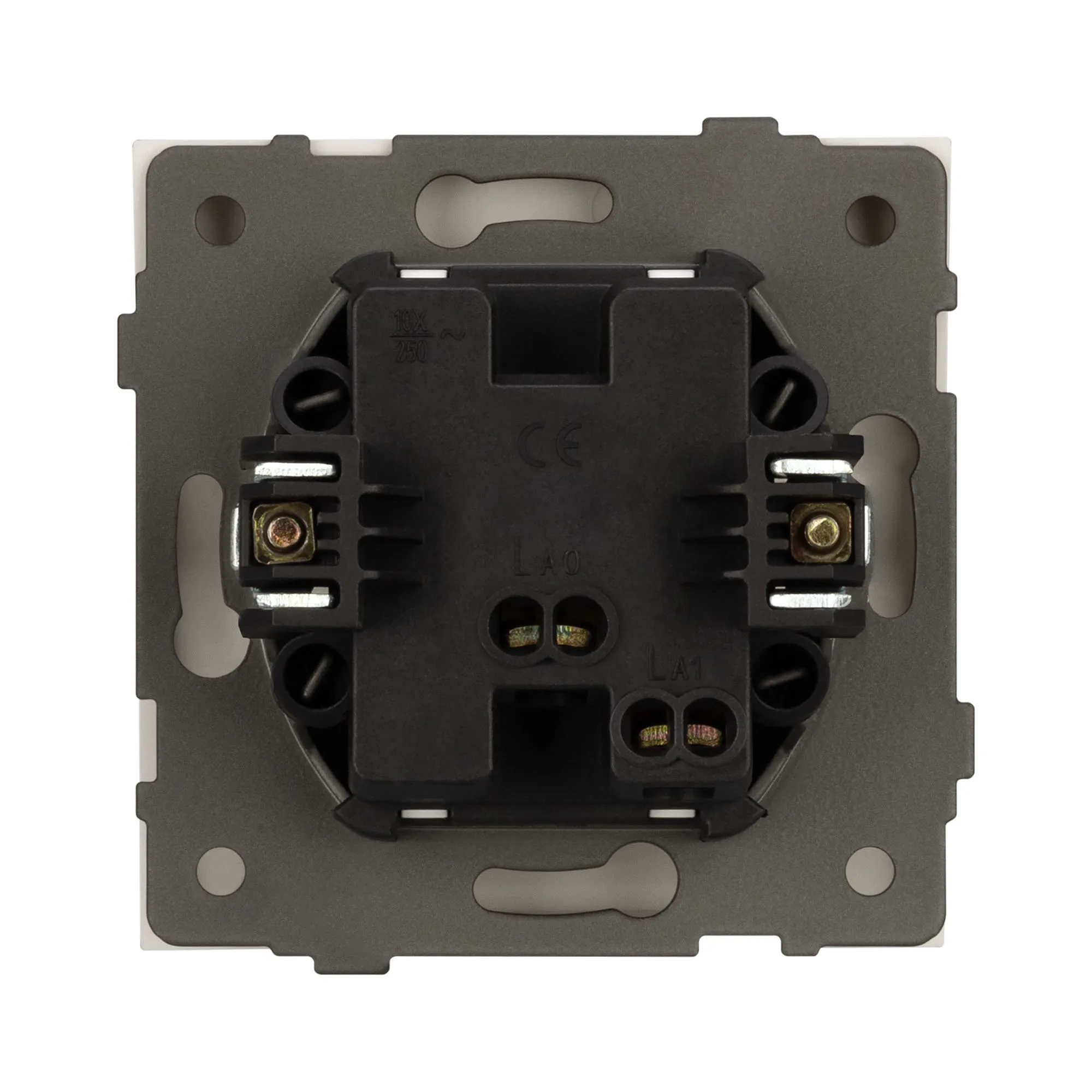 Механизм звонкового выключателя на 1 пост 1 клавиша. Цвет - белый. Без фронтальной рамки. Уровень пылевлагозащиты IP20. Выключатель устанавливается в стандартный подрозетник круглого сечения диаметром 60мм.