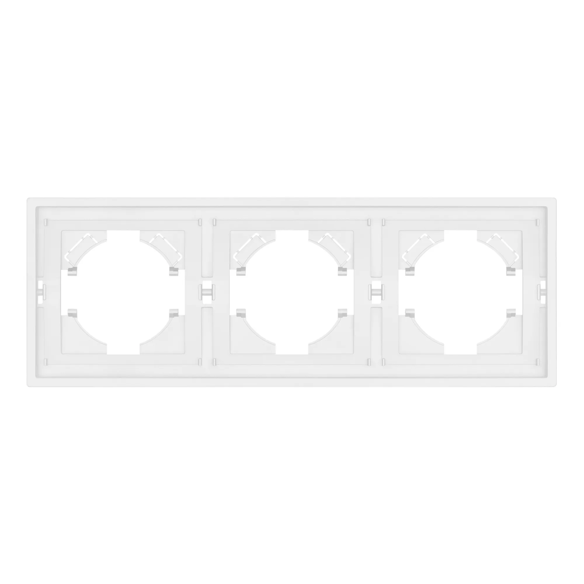 Рамка пластиковая на 3 поста, под встраиваемый механизм. Цвет - белый. Среднего уровня герметичности IP20. Ориентация монтажа горизонтальная.